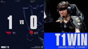 體育資訊11月9日訊 2025全球總決賽冠亞軍決賽,由KT對陣T1!