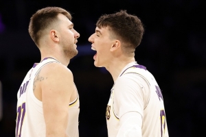 上半場湖人三分20中12,命中率高達60%,其中東契奇6中5,拉拉維亞3中3。