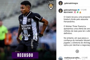 體育資訊1月14日訊 據(jù)巴西博主galeraalvinegra報(bào)道,武漢三鎮(zhèn)求購(gòu)塞阿拉前鋒費(fèi)爾南迪尼奧遭到拒絕。
