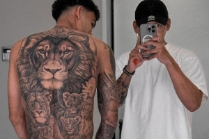 32歲的西班牙紋身師丹尼爾·斯通解釋說:“盧喬(迪亞斯的昵稱)在效力利物浦期間(2022年1月至2025年7月)找到我,因為他看到了我為他的前隊友達爾文·努涅斯(26歲,現效力于利雅得新月)設計的紋身。他一直想紋一只和家人在一起的大獅子。我被要求設計一個象征迪亞斯想要保護家人的圖案。這只獅子也應該體現他在球場內外所展現出的力量和勇氣?!?/p>