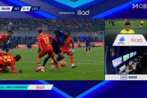 體育資訊01月15日訊 國米vs萊切第25分鐘,博尼禁區內倒地,裁判給了點球,但到場邊看VAR后,裁判判罰不是點球!