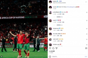 皇馬中場(chǎng)布拉欣·迪亞斯在本場(chǎng)比賽首發(fā)出戰(zhàn),他也在賽后通過(guò)社媒曬出和隊(duì)長(zhǎng)阿什拉夫的合照,并配文:“晉級(jí)決賽!”