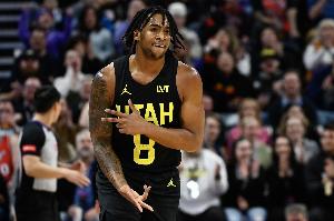 上半場,爵士球員森薩博狀態火熱,首節就拿下21分,半場不到就刷新賽季新高,在15分鐘的時間里,投籃13中10,三分球6中4,罰球4中4,轟下28分1籃板2搶斷的數據。