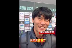 體育資訊01月15日訊 中國男足U23戰平泰國,首次晉級亞洲杯淘汰賽。賽后胡荷韜在混合采訪區接受了采訪。