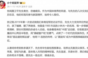 體育資訊1月15日訊 乒乓球名將鄧亞萍發文,悼念“棋圣”聶衛平離世。