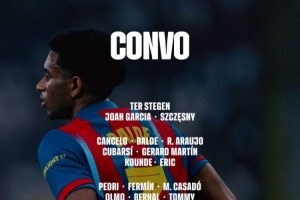 體育資訊1月15日訊 北京時間明天凌晨4點,巴薩將在國王杯16強戰(zhàn)中客場對陣桑坦德競技,巴薩公布了此役的球員名單,冬窗加盟的坎塞洛在列,德容停賽。