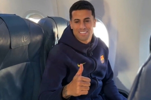 體育資訊1月15日訊 巴薩官推曬出視頻,新援坎塞洛隨隊出征國王杯。