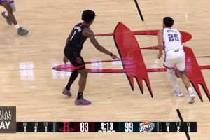 申京失誤后雷霆回場違例漏吹,烏度卡向裁判投訴吃T。