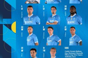 那不勒斯首發:32-瓦尼亞、22-迪洛倫佐、13-拉赫馬尼、4-布翁喬爾諾、3-古鐵雷斯、99-安古伊薩、68-洛博特卡、8-麥克托米奈、21-波利塔諾、20-埃爾馬斯、19-霍伊倫