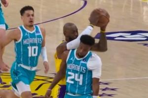 GIF-米勒防守犯規,黃蜂挑戰失敗
