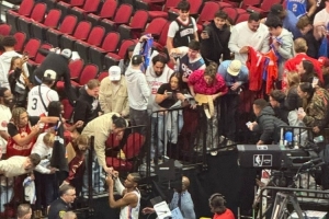 賽后,亞歷山大為休斯敦的客場球迷簽名。