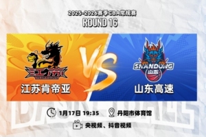 1月17日19:35,2025-26賽季CBA常規賽第十六輪,江蘇肯帝亞將回歸主場,迎來丹陽賽區的主場收官戰,迎戰山東高速,此戰之后球隊將轉場至南通賽區。