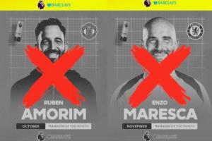 本賽季英超此前頒發了四座月度最佳主教練的獎杯,其中11月得主馬雷斯卡于元旦當天下課,而10月最佳得主阿莫林于1月5日下課。