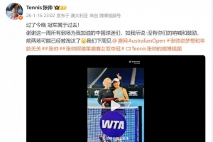 體育資訊1月16日訊 WTA500阿德萊德站女雙決賽,2號種子張帥/西尼亞科娃以2-0擊敗奇琴諾克/克勞茨克成功奪冠。賽后,張帥更新社媒談到感想。