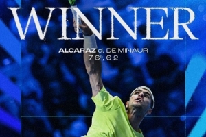 體育資訊11月9日訊 ATP總決賽吉米·康納斯組首輪,頭號種子阿爾卡拉斯7-6(5) 6-2擊敗7號種子德米納爾,順利取得小組賽開門紅。