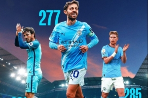 本場比賽也是B席第277次代表曼城在英超出場,升至隊史第三位,僅次于席爾瓦的309場以及德布勞內的285場。