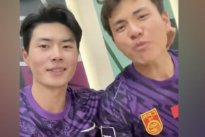 賽后中國隊替補門將霍深坪更新社交媒體,曬出中國隊更衣室放音樂跳舞慶祝動態。李昊在視頻中爆粗口慶祝。