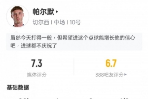 體育資訊1月18日訊 英超第22輪,切爾西2-0布倫特福德。帕爾默首發(fā)出戰(zhàn),打滿全場,打進1粒點球,2次過人成功,2次攔截,評分7.3。