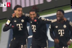 第87分鐘,奧利塞破門,穆西亞拉助攻,拜仁5-1。↓