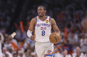 雷霆二當家杰倫·威廉姆斯上半場表現全面,進攻端手感也不錯,不過他在第二節一次突破中受傷離場。