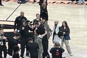 比賽結(jié)束后,綠軍冠軍成員、現(xiàn)老鷹中鋒波爾津吉斯(本場因傷沒有出戰(zhàn))擁抱了豪澤(本場命中10記三分),并與塔圖姆、懷特寒暄。