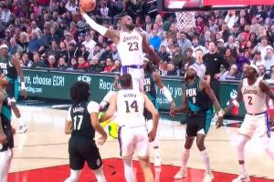 GIF-詹姆斯晃飛防守單臂暴扣