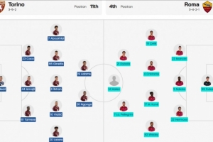 體育資訊1月19日訊 北京時間凌晨1點,意甲第21輪,都靈vs羅馬的首發陣容公布。