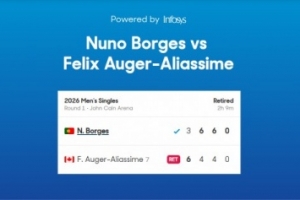 加拿大名將阿利亞西姆在澳網(wǎng)男單首輪對陣博爾熱斯,這位賽會7號種子在6-3 4-6 4-6大比分1-2落后時因傷退賽,博爾熱斯因此晉級男單次輪,阿利亞西姆也成為首位掉隊的男單前八種子。