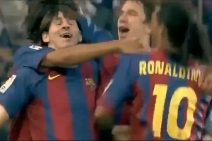 當時巴薩主場2-0擊敗對手,埃托奧破門,身穿30號的17歲小將梅西替補登場,在最后時刻接小羅助攻打進一線隊首球。隨后兩人跑到場邊慶祝,小羅彎下腰,梅西跳到大哥背上慶祝的畫面也成為了足壇最經典的畫面之一。