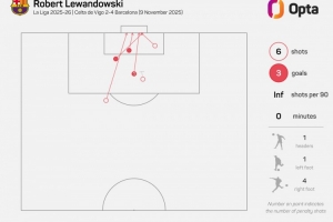 據(jù)Opta統(tǒng)計,37歲80天的萊萬是本世紀西甲第三年長的戴帽球員,僅次于若熱-莫利納(39歲241天)、華金-桑切斯(38歲140天)。