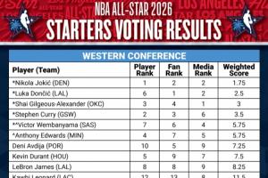 體育資訊01月20日訊 2026年NBA全明星首發出爐,隨之的全明星首發投票詳情也出爐。