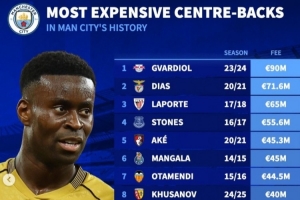 體育資訊1月20日訊 曼城已經(jīng)官宣簽下格伊,《轉(zhuǎn)會市場》也統(tǒng)計了曼城隊史中衛(wèi)引援榜,格伊僅位列第12位。