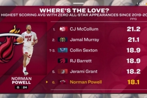 19-20賽季以來場均得分最高但從未入選全明星球員Top6:CJ、穆雷、塞克斯頓、巴雷特、格蘭特、鮑威爾