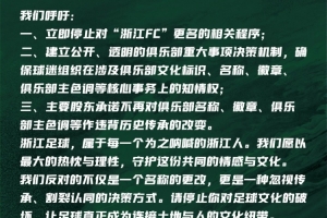 關于堅決反對“浙江FC”更名的聯合聲明
