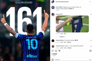 數據統計顯示,他也也追平馬佐拉并列國米隊史射手榜第4位。