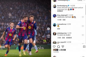 德容社媒曬出與萊萬慶祝進球的合照,配文:“球隊展現了很棒的態度,收獲一場重要的勝利。”