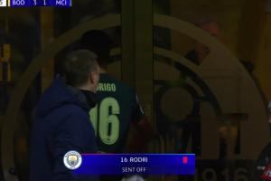 體育資訊01月21日訊 歐冠聯賽階段第7輪,曼城客戰博德閃耀。61分鐘,羅德里1分鐘連吃2黃,被罰下。