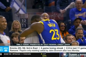 該記者表示:“我們都知道唐斯和德雷蒙德·格林相處得不好,我們看到了他們?cè)诓タ蜕蟻?lái)回交鋒,每次交手都火藥味十足,邁克·布朗知道這一點(diǎn),然而在賽后,當(dāng)追夢(mèng)絆倒唐斯的那場(chǎng)比賽結(jié)束后,他被看到之后擁抱了追夢(mèng)并與其談笑風(fēng)生。”