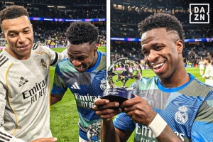 體育資訊1月21日訊 據轉播方DAZN報道稱,在皇馬6-1擊敗摩納哥后,姆巴佩是最先祝賀維尼修斯獲得全場MVP的隊友。