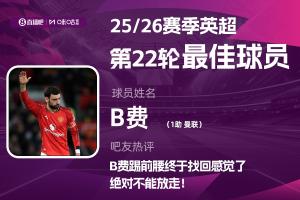 2025-2026賽季英超火熱進行中,體育資訊和咪咕體育聯合發起每輪英超最佳球員評選活動!第22輪評選結果已經出爐,曼聯隊長B費送出助攻幫助球隊擊退曼城,贏下曼市德比,成功當選本輪英超最佳。