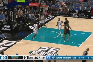 GIF-莫蘭特拉拽切特,裁判回看后吹普通犯規,來看兩個視角動圖!