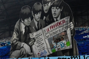 本場比賽馬賽球迷在主場展示出披頭士主題TIFO,披頭士是一支在1960年成立于利物浦的經典英國搖滾樂隊。