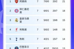 體育資訊1月22日訊 歐冠聯賽階段第7輪戰罷,拜仁鎖定前8確定晉級,利物浦升第4,切爾西升第8,巴薩升第9,曼城跌至第11,最新積分榜如下: