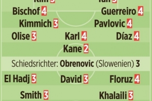體育資訊1月22日訊 在本輪歐冠,拜仁2-0擊敗圣吉羅斯。《圖片報》也為拜仁球員本場表現做出評分,具體如下(德媒評分1分最高,5分最低):