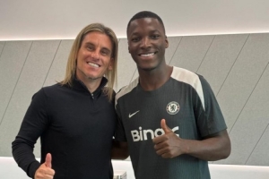 厄瓜多爾國家隊主帥塞巴斯蒂安·貝卡切斯來到斯坦福橋觀看這場比賽,并與凱塞多合影。