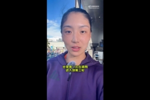 王欣瑜錄制自拍視頻慶祝,她說道:“大家好,我是欣瑜,今天非常開心贏得了這場比賽,也是第一次在澳網(wǎng)進入到第三輪,所以很期待在下一場比賽接著見到你們,謝謝。”