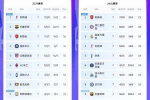 體育資訊01月22日訊 歐冠聯賽階段第7輪全部結束,對比上屆歐冠7輪戰(zhàn)罷之后的積分,同樣也出現了13分扎堆的情況。