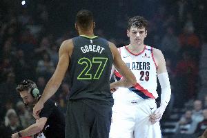 本賽季至今戈貝爾場均能得到11分11.4板1.7帽,投籃命中率71.8%,沒出手過三分;克林根場均貢獻11.3分10.9板1.3帽,投籃命中率53.7%,三分命中率31%。