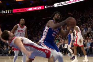 GIF-恩比德進攻拱飛申京 烏度卡抱怨吃T