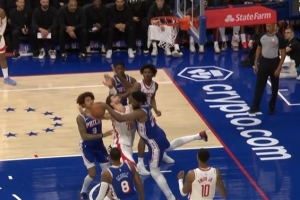 GIF-申京造恩比德犯規 76人挑戰成功